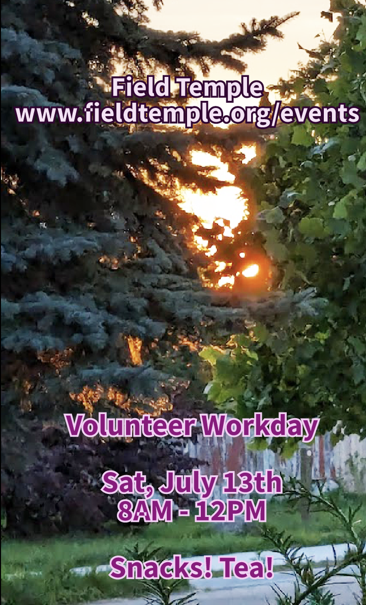 Come put your love into the Earth with us as we clean up and care for our recently acquired parcels adjacent to the beautiful Temple grounds. Snacks and refreshments will be provided. Please bring a bottle of water and sun protection. If you have work gloves and favorite tools, bring those along too!